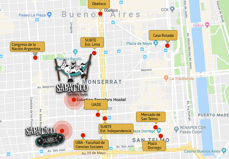 For its location, in the heart of Buenos Aires. Close to the main subway lines and a few blocks from the Obelisco. However, unlike other hostels, Sabatico is located on a calm and quiet street, allowing you to enjoy a comfortable night's sleep.